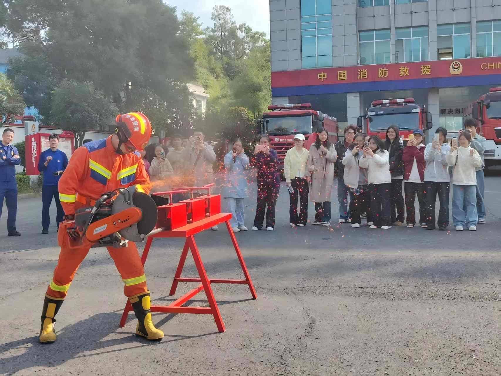 现场,师生们在消防指战员引导下参观了消防车辆及各类器材装备,实地观摩了绳索攀爬、紧急破拆等日常训练科目。“消防员仅用十几秒就能完成高空攀爬,不仅要克服恐惧,更要在火场中实施救援,这种专业与勇气令人由衷敬佩。”一位来自湖南城市学院人文学院的学生说。